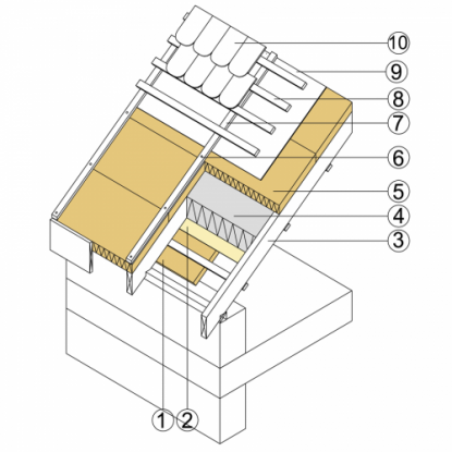Izolacja dachu stromego polega na wypełnieniu przestrzeni między krokwiami wełną VestaEco FLEX lub FIBRA oraz na ułożeniu na krokwiach sztywnej płyty izolacyjnej VestaEco LDF UNI lub THERM. Od wewnątrz pod krokwiami układana jest warstwa paroizolacji VestaEco V. System izolacji dachu stromego VestaEco zapewnia bardzo niski współczynnik przenikania ciepła, eliminację mostków cieplnych na krokwiach oraz ochronę poddasza przed przegrzewaniem w lecie.