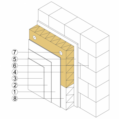 Izolacja ściany murowanej metodą lekką mokrą obejmuje ocieplenie odporną na uderzenia płytą izolacyjną VestaEco WALL. Otwarta dyfuzyjnie płyta izolacyjna ułatwia odprowadzenie wilgoci ze ściany i stanowi podłoże dla wyprawy tynkarskiej o właściwościach paroprzepuszczalnych. Mocowanie płyty do ściany murowanej przy pomocy kołków i zaprawy klejowej.