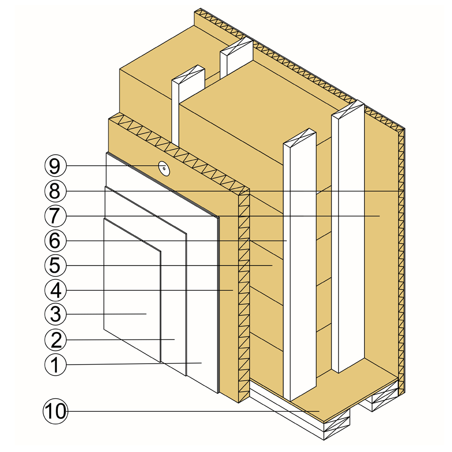Izolacja ściany w technologii strawbale polega na wypełnieniu szkieletu drewnianego kostkami słomy oraz pokryciu ich od zewnątrz sztywną płytą izolacyjną VestaEco LDF UNI lub THERM umożliwiającą tynkowanie. Wysoką pojemność cieplną ściany zwieksza dodatkowo warstwa tynku glinianego ułożonego od wewnątrz pomieszczenia na płycie VestaEco LDF.